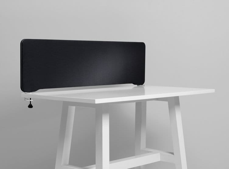 Bordsskärm med funktionell design och ljudabsorberande egenskaper. Finns i en mängd olika storlekar för front- eller toppmontering. Tillgänglig i fem olika sorters tyger samt gummilist i sju olika färger. Skärmen är fylld med 30 mm återvunnen polyester som effektivt absorberar ljud. Designad av Halleroed.
